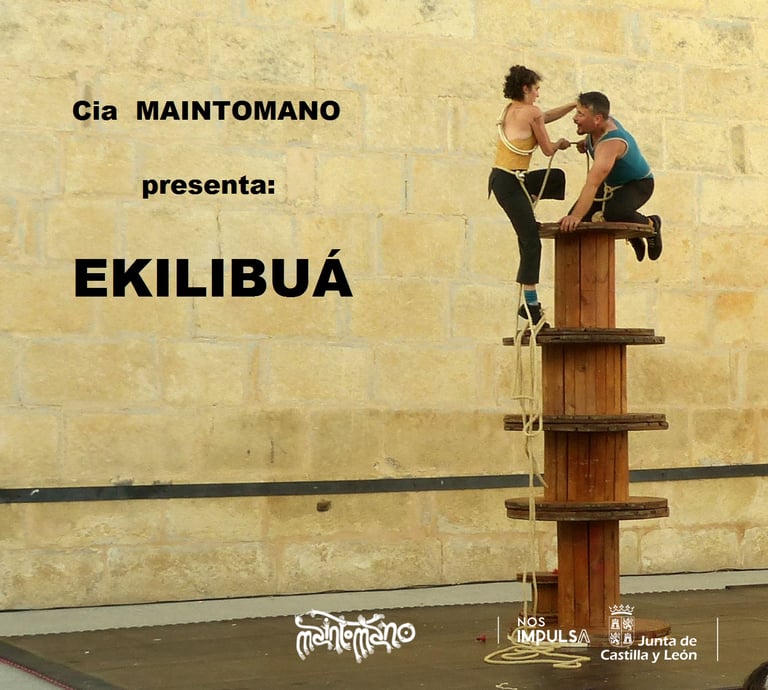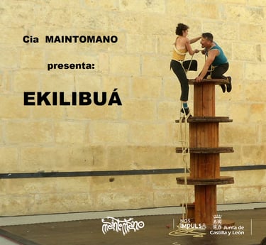 Dos personajes y su pequeño rebaño rodante… Juegos de construcción de plataformas , jugamos a ver quién sube más alto, hasta que no se pueda más… juego arriesgado! siempre jugando a ver quién lleva las riendas pero sobre todo, siempre jugando mano a mano. Ekilibuá es un espectáculo para todos los públicos que fusiona la teatralidad con los portés acrobáticos, los equilibrios, la manipulación de objetos y mucha complicidad.